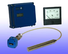 Датчики-индикаторы относятся к типу емкостных приборов. Принцип действия основан на высокочастотном преобразовании изменения электрической емкости чувствительного элемента, вызванного изменением уровня контролируемой среды, в выходной сигнал постоянного тока 0...5 мА или 4...20 мА с индикацией на цифровом табло (и показывающем приборе) в %-х уровня, в два "релейных" сигнала при достижении контролируемой средой заданных уставок (предельных уровней).