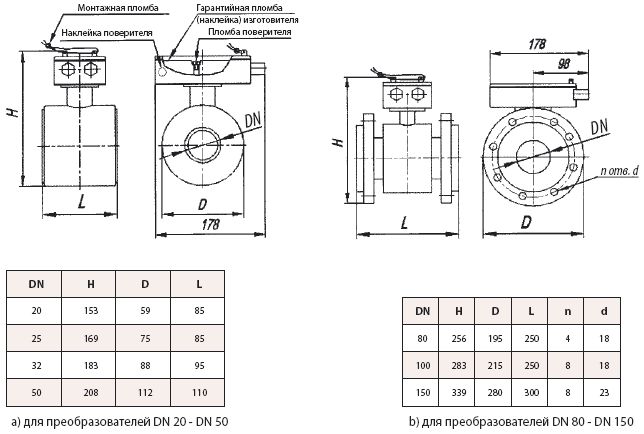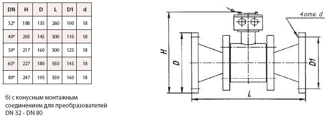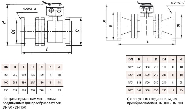 присоединительные размеры преобразователей расхода жидкости