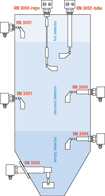 Rotonivo® RN 3000  | Сигнализация предельного уровня | Технические данные Корпус | Алюминий IP 66 | Допуски | ATEX II 1/2 D | Диапазон температур процесса | -25ºC до +600ºC | Диапазон давлений | макс. +10Бар | Чувствительность | мин. 20г /л - трехступенчатая регулировка чувствительности | Напряжение питания | 110-120В или 220-240В AC 50-60Гц, 24В, 48В AC 50-60Гц, 24В DC | Технологическое подключение | G1, G1¼ и G 1½"; NPT 1¼ и NPT 1½", M30x1,5, M32x1,5 | Подшипник | Капсулированный шариковый подшипник с дополнительным уплотнением вала | Модификации RN 3005 Сигнализация наполнения Особо короткое исполнение для применения в загрузочных телескопах